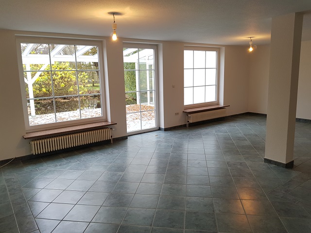 Sie haben den Wunsch großzügig, idyllisch und trotzdem zentral zu wohnen? Wir können Ihnen eine 180 m² Wohnung über 2 Ebenen direkt in Zeven anbieten; Einkaufsmöglichkeiten, Schulen, Kindergarten sind gut erreichbar. Im EG befindet sich das ca. 54 m² große Wohn-/Esszimmer mit Zugang zur Terrasse, die Küche mit hochwertiger EBK und Zugang zum Wintergarten, ein Gäste-WC mit Dusche sowie Flur. Das DG besteht aus drei reell großen Zimmern, einem Vollbad mit Badewanne incl. Whirlpoolfunktion, Abstellraum mit WA-Anschluss sowie einer großen Diele; insgesamt ca. 180 m² Wohnfläche. Im ganzen EG sowie im Bad/OG Fußbodenerwärmung, die Fußböden sind z.Teil mit hochwertigen Fliesen oder Teppichboden belegt. Zum Mietobjekt gehören wie schon erwähnt eine großzügige Terrasse mit angrenzendem Teich und ein toller Wintergarten. Ein Pkw-Stellplatz ist auf dem Grundstück vorhanden. Bei Interesse kann auch ein Teil des Gartens dazu gemietet werden. Die 350,- € Nebenkosten sind für 2 Personen ausgelegt und beinhalten alles incl. Strom! Diese besondere Wohnung kann nach Absprache kurzfristig gemietet werden.